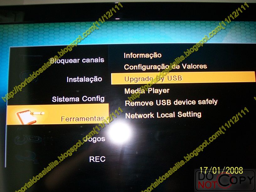 4 ) Entre no MENU > FERRAMENTAS > UPGRADE BY USB